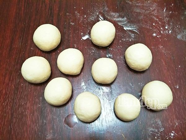 Bước 3: Lấy khối bột ra bàn sạch, cắt bột thành những miếng nhỏ, sau đó làm tròn từng miếng bột lại.