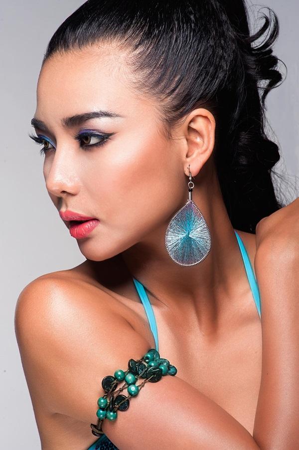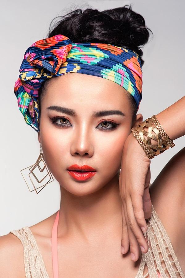 Son môi hồng da kết hợp với màu mắt màu cam đất cùng kiểu tóc cột cao tạo cho bạn gái vẻ đẹp lạnh lùng cá tính.
