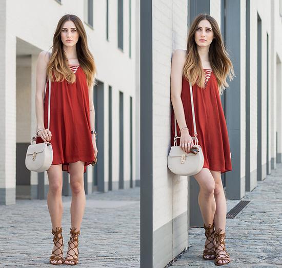 váy dáng suông mềm mại, xăng đan "chiến binh" và túi mini ra đường.