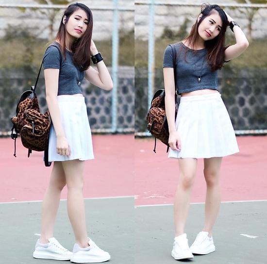 Chân váy xòe và áo crop top là cặp đôi hoàn hảo giúp Deasy Tantra
