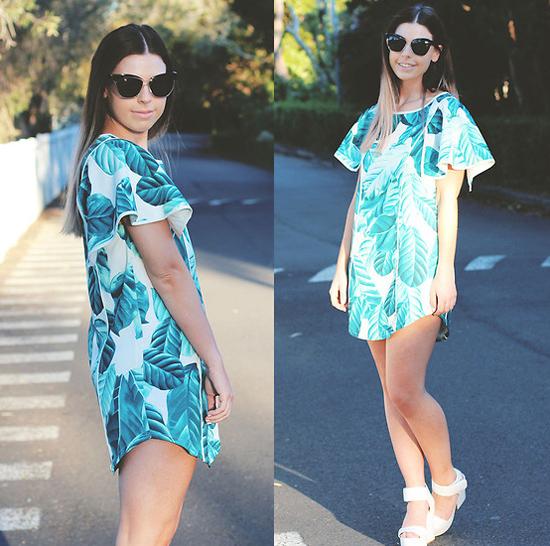 Street style ngày cuối tuần với một chiếc váy dáng suông hoa lá như