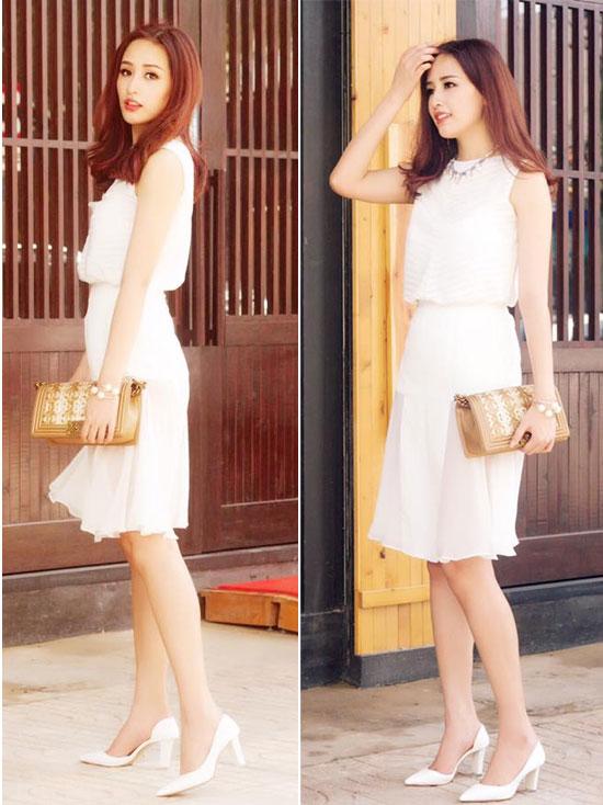 Váy gam màu trắng luôn thích hợp với những cô nàng dáng người mảnh dẻ. Thêm