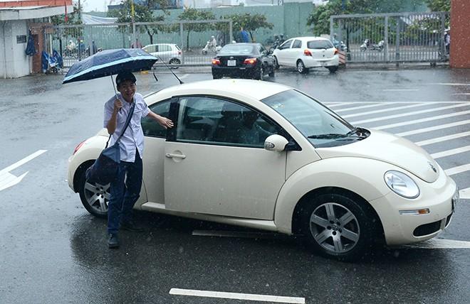 Học sinh trường chuyên Hà Nội - Amsterdam đi khai giảng trong cơn mưa khá lớn.