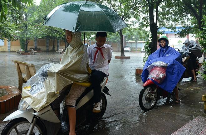 Tuy nhiên, Hà Nội mưa lớn, ảnh hưởng không nhỏ đến buổi lễ khai giảng. Ngay từ 6h30, trên các nẻo đường của thủ đô, các học sinh không ngại đội mưa để về trường dự buổi lễ ý nghĩa này.