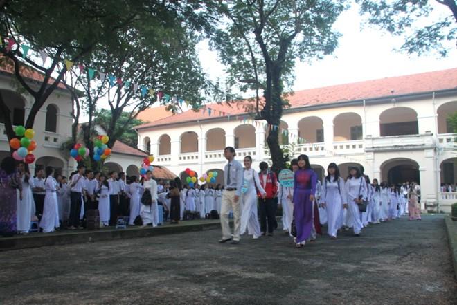 Tại TP.HCM, thời tiết đẹp hơn Hà Nội. Trên đường phố từ sáng sớm đã tấp nập nữ sinh mặc áo dài trắng đi khai trường. Ở trường THPT chuyên Lê Hồng Phong, lễ khai giảng được tổ chức khá sớm. Từ 60h30, gần 1.500 học sinh đã tập trung tại trường.