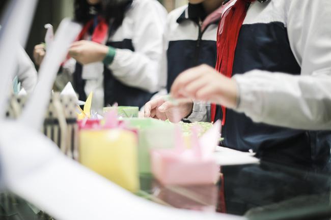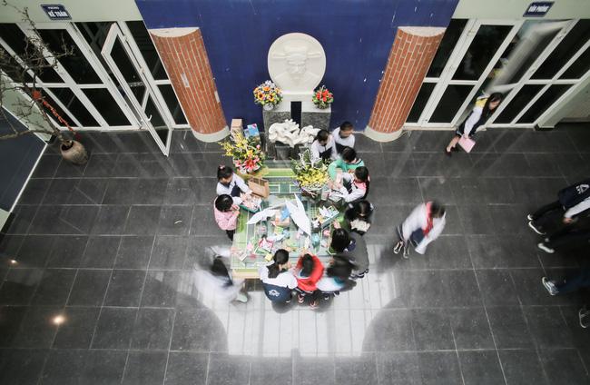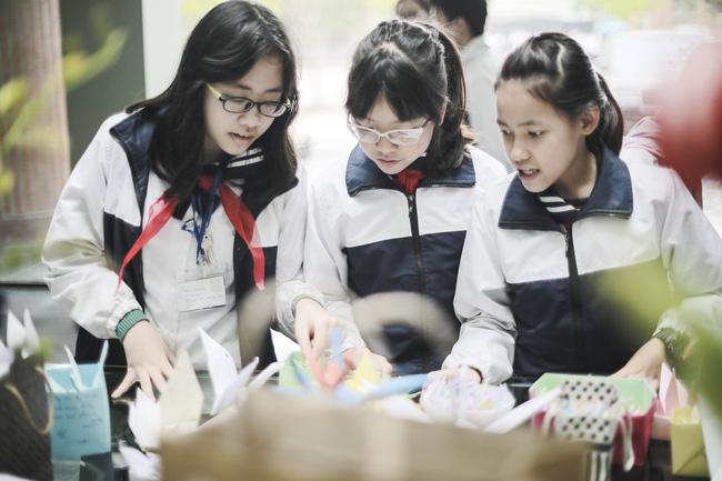 Khu vực gấp hạc giấy vào giờ ra chơi của học sinh Lương Thế Vinh cơ sở Nam Trung Yên.