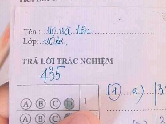 Dân mạng nhận xét đây chính là bằng chứng cho thấy mức độ "khủng khiếp" của áp lực thi cử, đến nỗi học sinh ghi tên mình thành mã đề. Ảnh: Trường người ta.
