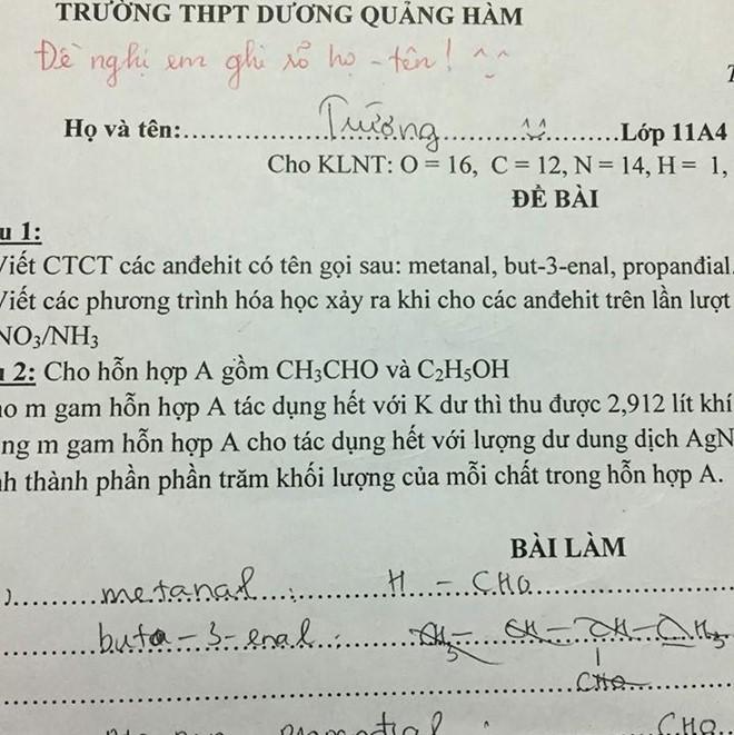 Hãy nhớ ghi đầy đủ tên mình lên giấy thi. Nếu bạn quên, thầy cô sẽ điền giúp bạn. Ảnh: Trường người ta.