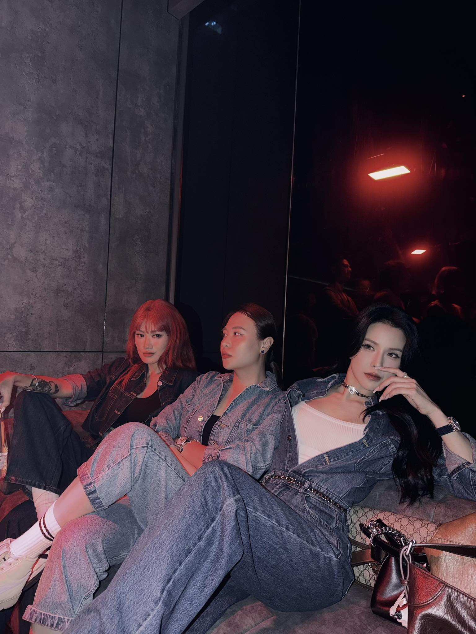 Theo đó, Pông Chuẩn được hội bạn "phú bà" thân thiết gồm Đàm Thu Trang và Diệp Lâm Anh bí mật tổ chức sinh nhật tuổi 35. Trong hình, bộ ba diện đồ denim đồng điệu khoe thần thái cực chất chuẩn chị đẹp làng mẫu đình đám một thời.