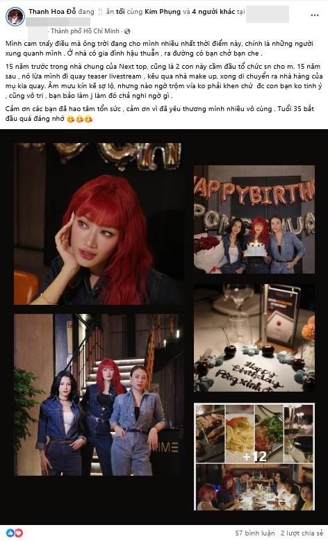Cảm ơn các bạn đã hao tâm tổn sức, cảm ơn vì đã yêu thương mình nhiều vô cùng. Tuổi 35 bắt đầu quá đáng nhớ."
