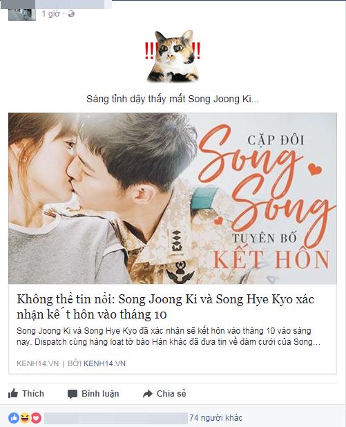 Sáng hôm nay vẫn là buổi sáng như bao nhiêu ngày khác, như quy luật tuần hoàn tự nhiên vẫn thế. Tuy nhiên, có một điều khác thường, khiến hàng triệu cô gái tỉnh giấc trong tiếng thét kinh hoàng, rửa mặt bằng nước mắt thay nước lã. Đó là tin cặp đôi Song Hye Kyo - Song Joong Ki chính thức công khai tình cảm, và sẽ về chung một nhà vào tháng 10 tới đây!