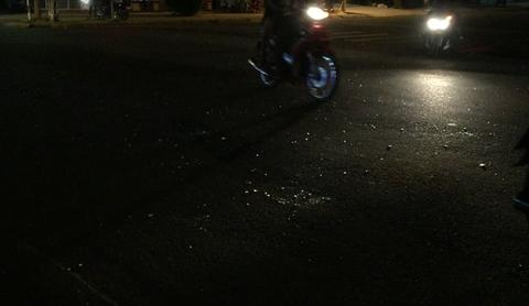 Nhiều mảnh vỡ văng tung tóe, vương vãi khắp mặt đường