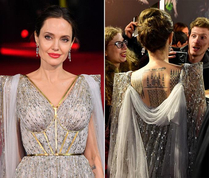 Hình xăm ở lưng chất lừ của Angelina Jolie.