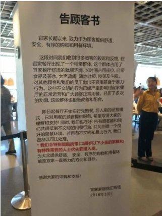 Những ngày qua, dư luận Trung Quốc lại dấy lên một làn sóng tranh cãi dữ dội khi siêu thị nội thất tọa lạc tại quận Xuhui ( Từ Hối) buộc phải lập một biển thông báo to đùng ngay lối vào với nội dung: "Vào mua thức ăn mới được ngồi ghế", "Không được tụ tập nói chuyện ồn ào, không cãi cọ, khạc nhổ bừa bãi",... với những hàng chữ đen xen lẫn in đỏ để gây sự chú ý cho khách hàng.