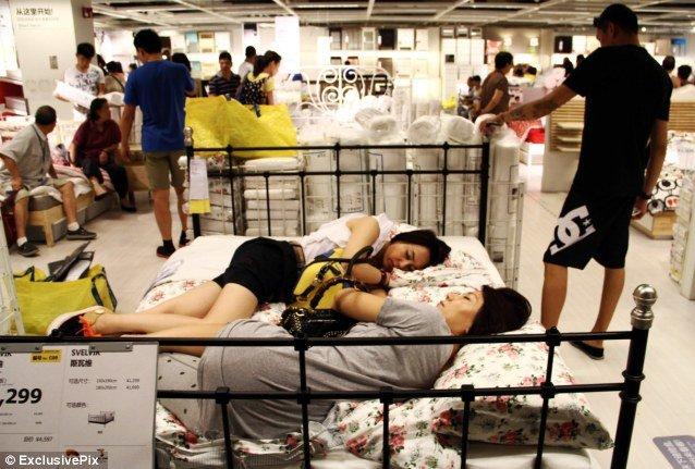 Cũng như nhiều siêu thị đã mở khắp thế giới, cửa hàng nội thất này có chủ trương cho khách thử thoải mái hàng hóa trưng bày trước khi quyết định mua hàng. Tuy nhiên, dường như điều đó đã bị chính những người dân nơi đây lạm dụng đến mức không tưởng tượng nổi.