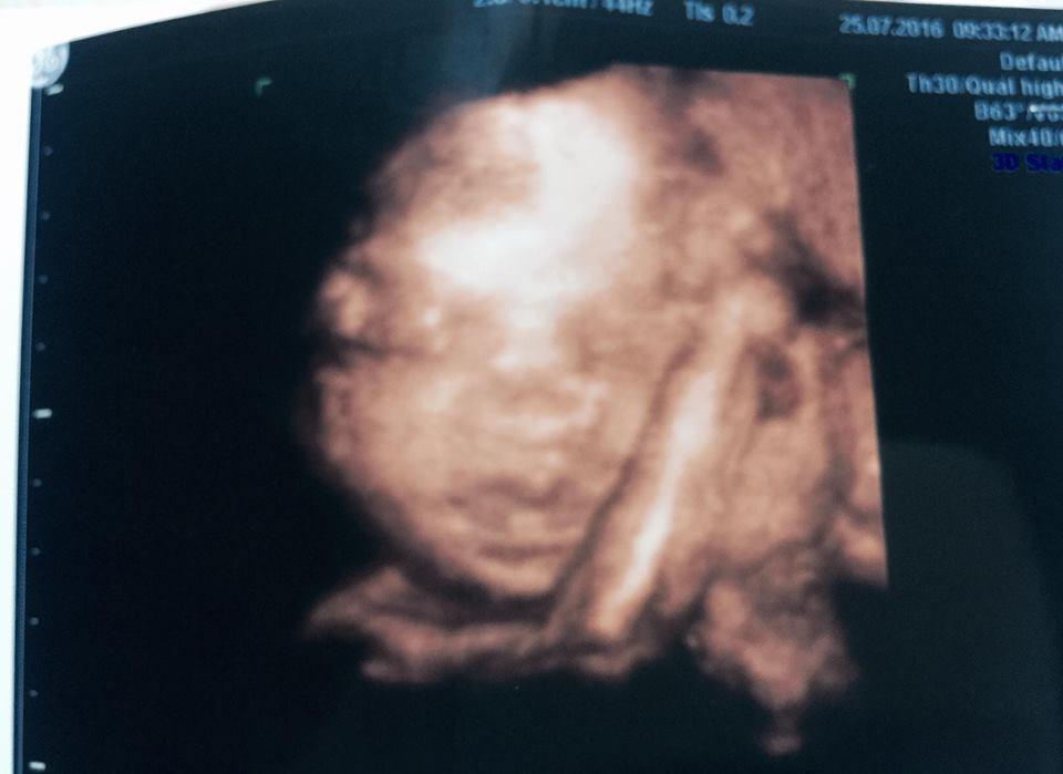 Hình ảnh em bé trong bụng được Hồng Quế nhận xét giống bố