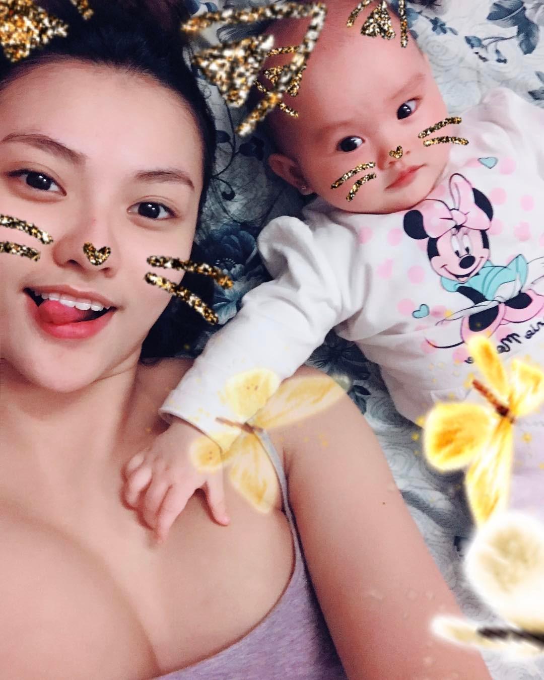 Trước đó, Hồng Quế từng gây chú ý khi chia sẻ clip ghi lại khoảnh khắc thiêng liêng của hai mẹ con. Trong clip, bé Cherry tinh nghịch vừa ti vừa đùa cùng mẹ. Chân dài bật mí: "Nó vừa ti vừa đùa".