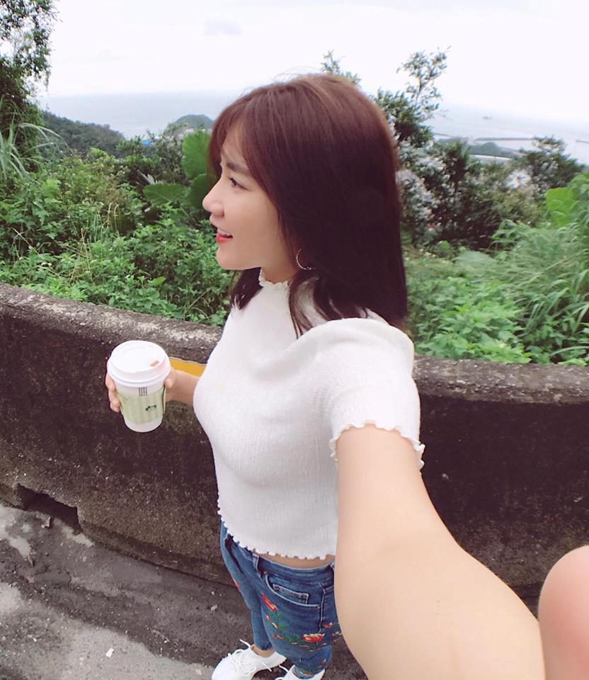 Ở khoảnh khắc khác cô nàng hào hứng selfie một mình.