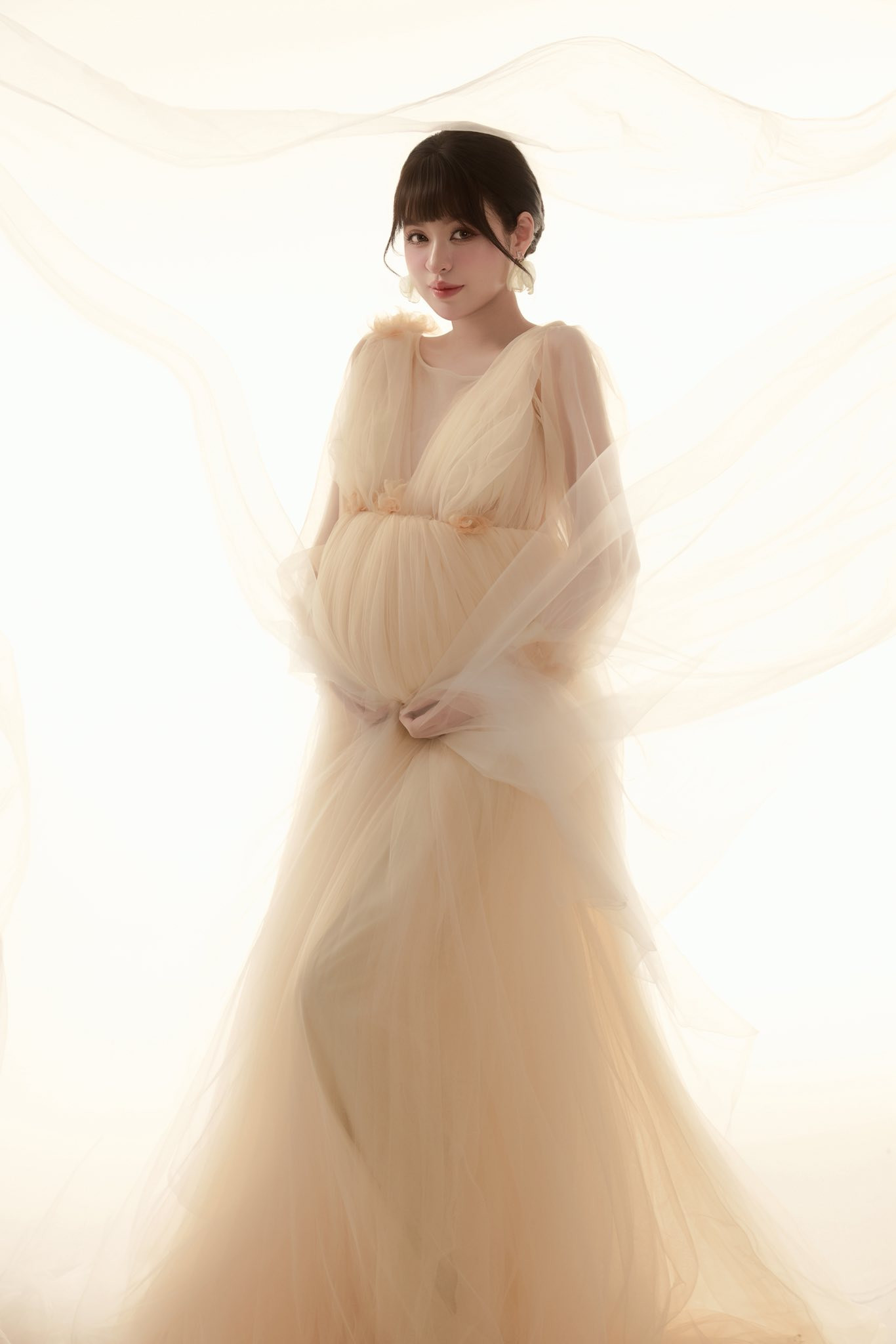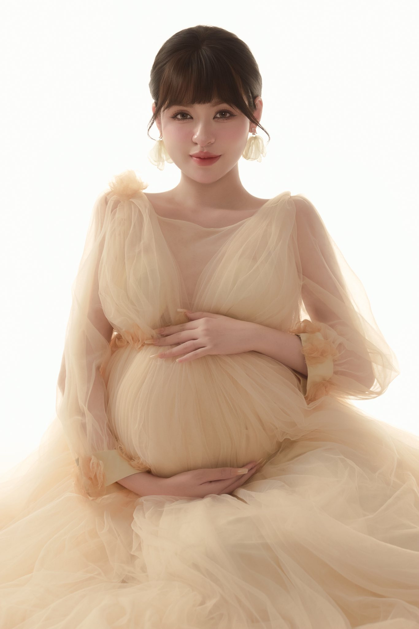 Theo đó, người đẹp đã bước sang những tháng cuối của thai kì. Trong hình, cô diện đầm bồng xòe màu be khoe nhan sắc mẹ bầu đỉnh chóp cùng chiếc bụng đang lớn lên từng ngày.