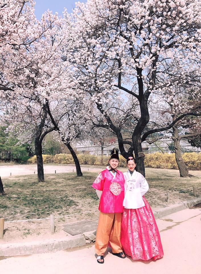 Bảo Trần hóm hỉnh chia sẻ về bức ảnh cùng bà xã diện trang phục truyền thống của người Hàn Quốc: "Mới tuyển được phi tần khá tươi".