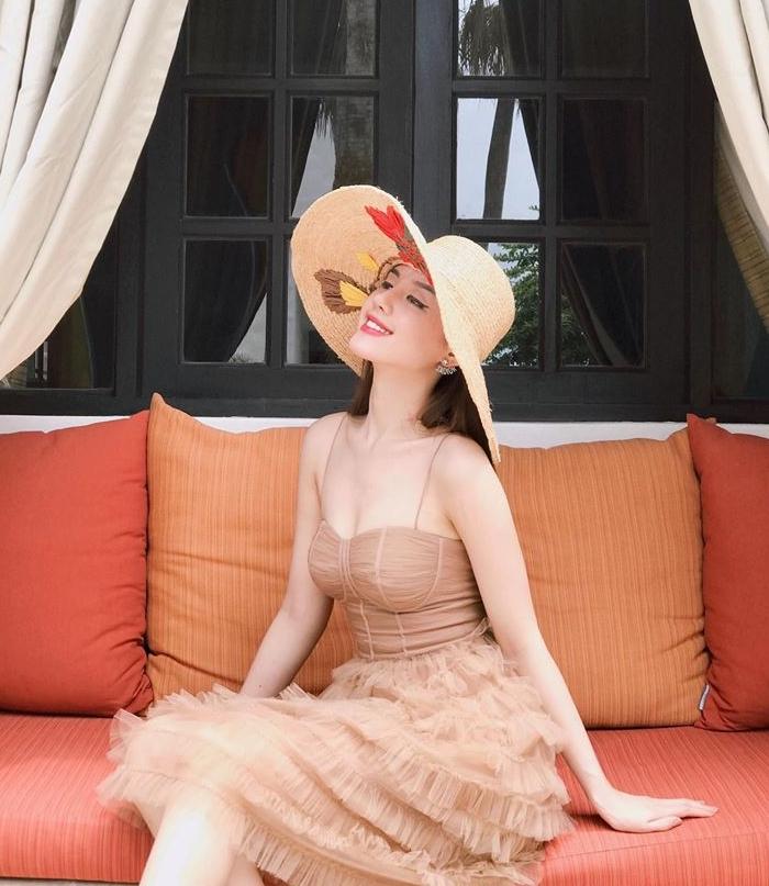Khánh Linh The Face điệu đà, khoe vai trần quyến rũ trong thời trang váy hai dây.