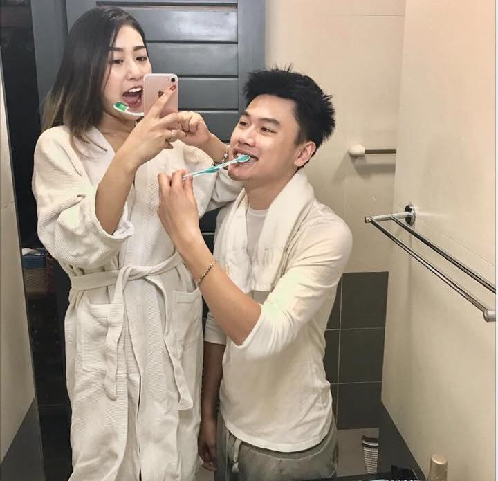 Tùng Sơn - Trang Lou tình cảm cùng nhau đánh răng.