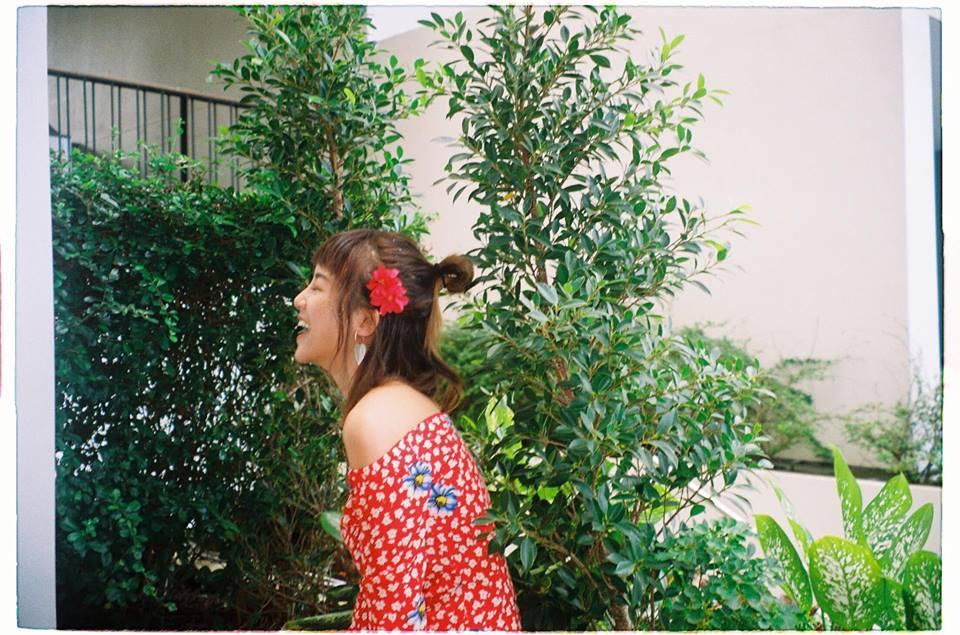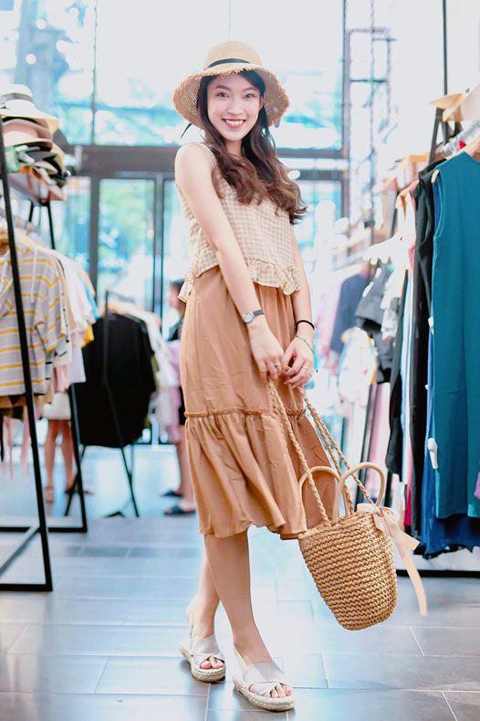 Trời nắng nóng, Emily Nguyễn lấy ví che đầu.