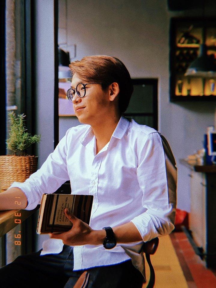 MC Quang Bảo thư giãn ngồi đọc sách.