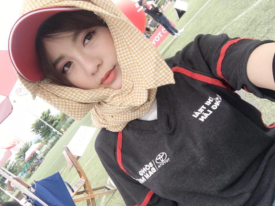 Tú Linh che bịt kín mít khi làm việc ngoài trời