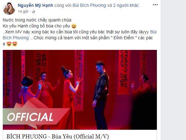 Hạnh Sino chia sẻ cảm xúc khi xem MV mới ra của Bích Phương: "Nước trong nước chảy quanh chùa, không yêu Hạnh cũng bỏ bùa cho yêu. Xem MV này xong bác không cần bùa, tôi cũng yêu bác luôn đó".