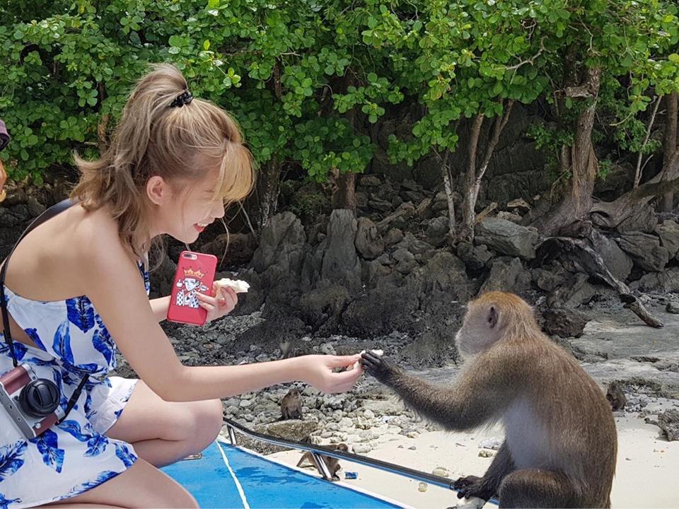 Ở khoảnh khắc khác, hot girl gây chú ý với bức ảnh chơi đùa bên một chú khỉ