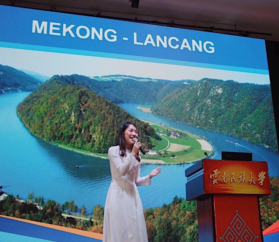 Hot girl Khánh Vy thuyết trình bằng tiếng Anh tại Trung Quốc. Nữ sinh Học viện Ngoại giao cùng 10 người khác được giao nhiệm vụ thực hiện bài thuyết trình về phát triển tình hữu nghị trong 6 nước tiểu vùng sông Mê Kông, đặc biệt dựa vào tầm quan trọng của truyền thông thanh niên.