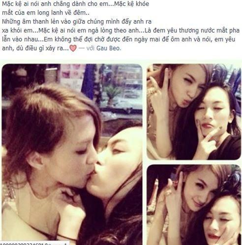 Mới đây, hot girl Kelly đăng tải hình ảnh nụ hôn đồng tính trên mạng xã hội kèm theo những lời tình cảm: “Em không thể đợi chờ được đến ngày mai để ôm anh và nói, em yêu anh, dù điều gì xảy ra”.