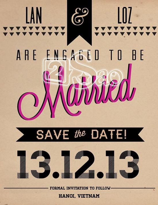 Thiệp mời hiện đại dành cho bạn bè của cặp đôi trẻ Lan và Loz được gửi gắm đến mọi người với sự trân trọng và nhắc nhớ ngày 13/12 sắp tới là ngày cô lên xe hoa.
