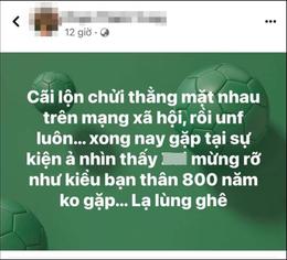 Mới đây, một nhân vật có tiếng trong giới showbiz đăng đàn nói về ai đó. Theo mô tả, anh và đối phương từng xảy ra mâu thuẫn, thậm chí chửi thẳng nhau trên mạng xã hội, hủy kết bạn Facebook.