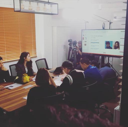 Hình ảnh e-kip Hàn Quốc cùng Jiyeon đang thảo luận với e-kip của Soobin Hoàng Sơn.