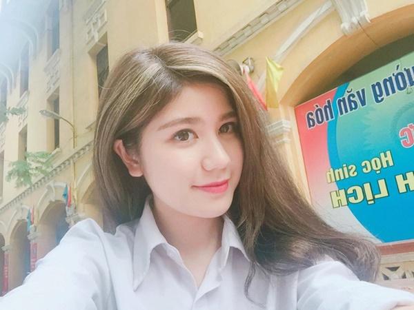 An Japan cũng chăm chỉ đi quay dù là trong kỳ nghỉ lễ. Trong hình là cô nàng đang có mặt tại trường THPT Phan Đình Phùng.