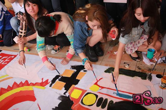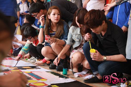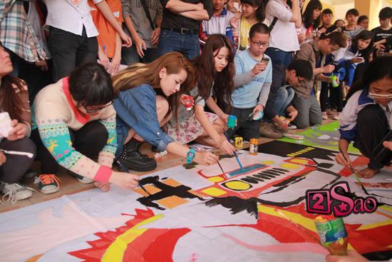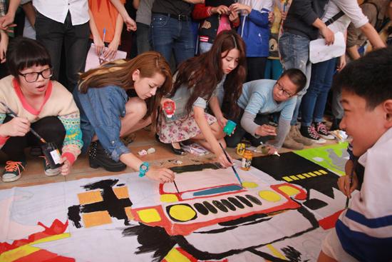 Các hot girl Chipu, Quỳnh Anh Shyn và hot boy Bê Trần cùng vẽ tranh cổ động