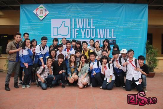 Sáng thứ bảy (2/3), tại sân trường THCS Thành Công, các nghệ sĩ đã có một buổi giao lưu ca nhạc như đã cam kết mang đúng tên gọi của chiến dịch I will if you will là nếu có đủ 500 em cam kết tắt điện khi ra khỏi lớp học, không xả rác bừa bãi trên hành lang lớp học...các nghệ sĩ sẽ tổ chức một buổi giao lưu ca nhạc với các em”.