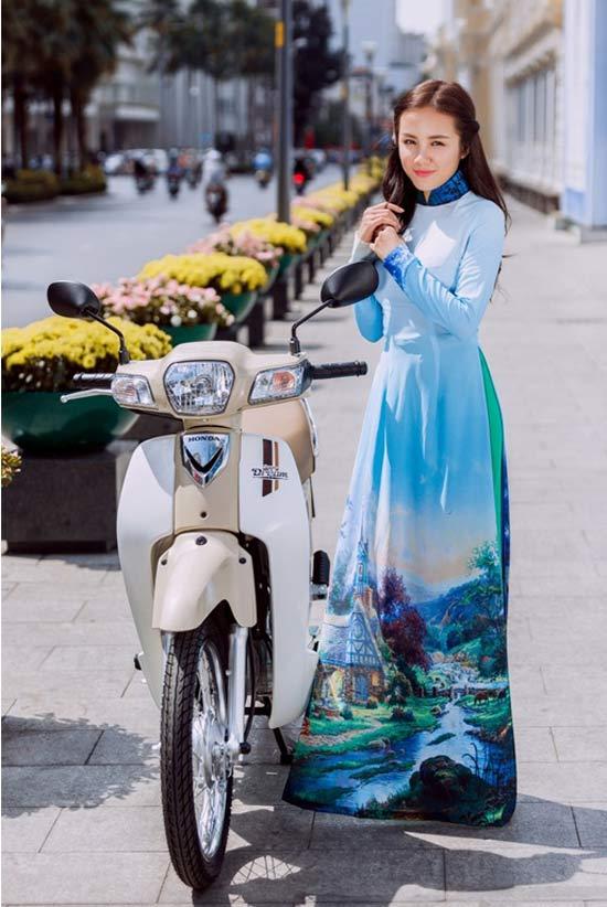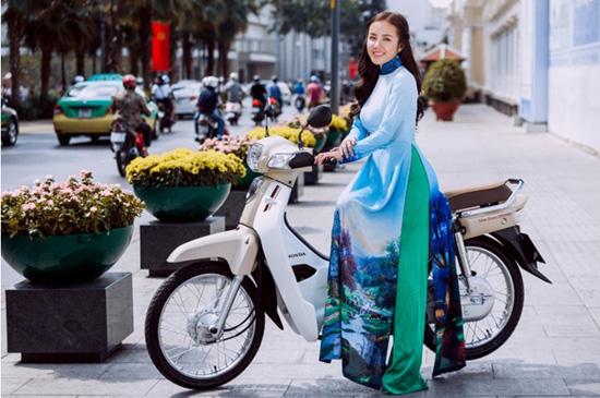 Phương Ly không chỉ cá tính, nổi bật bên “xế mới”, mà còn rất dịu dàng, đằm thắm trong tà áo dài thướt tha.