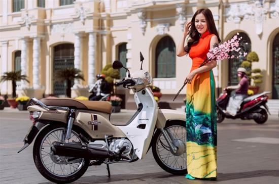 Phương Ly đẹp rạng rỡ bên hoa đào và xe