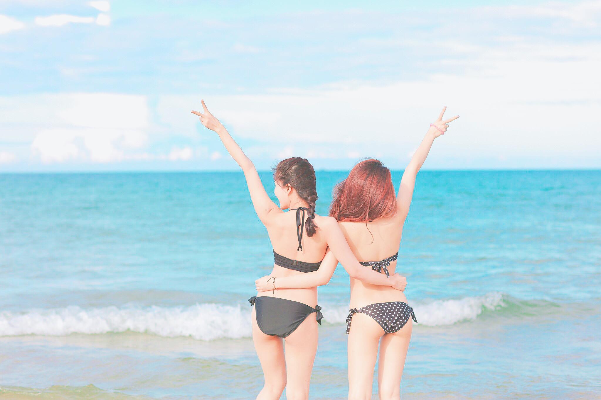 Cô nàng và bạn cùng chụp hình diện bikini và quay lưng chụp ảnh đúng mốt