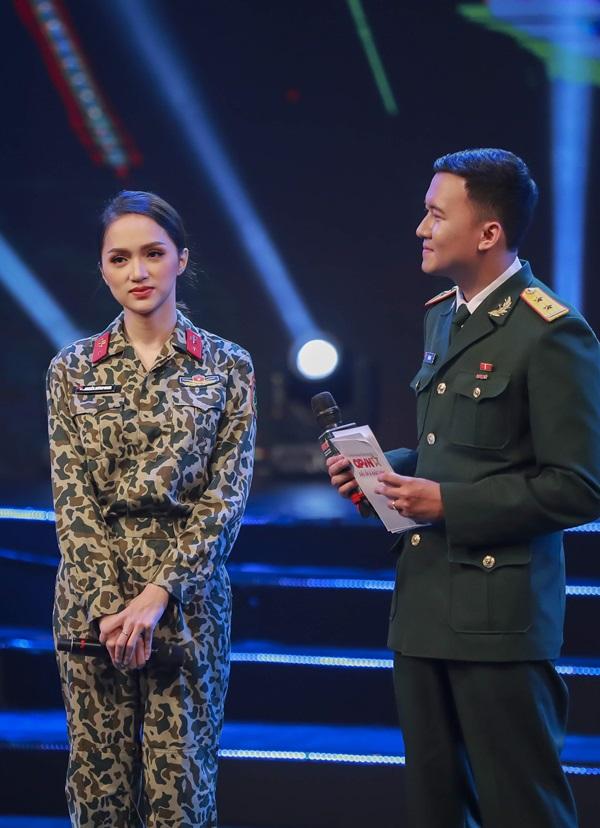 Hương Giang lần đầu mặc lại quân phục sau khi đăng quang.