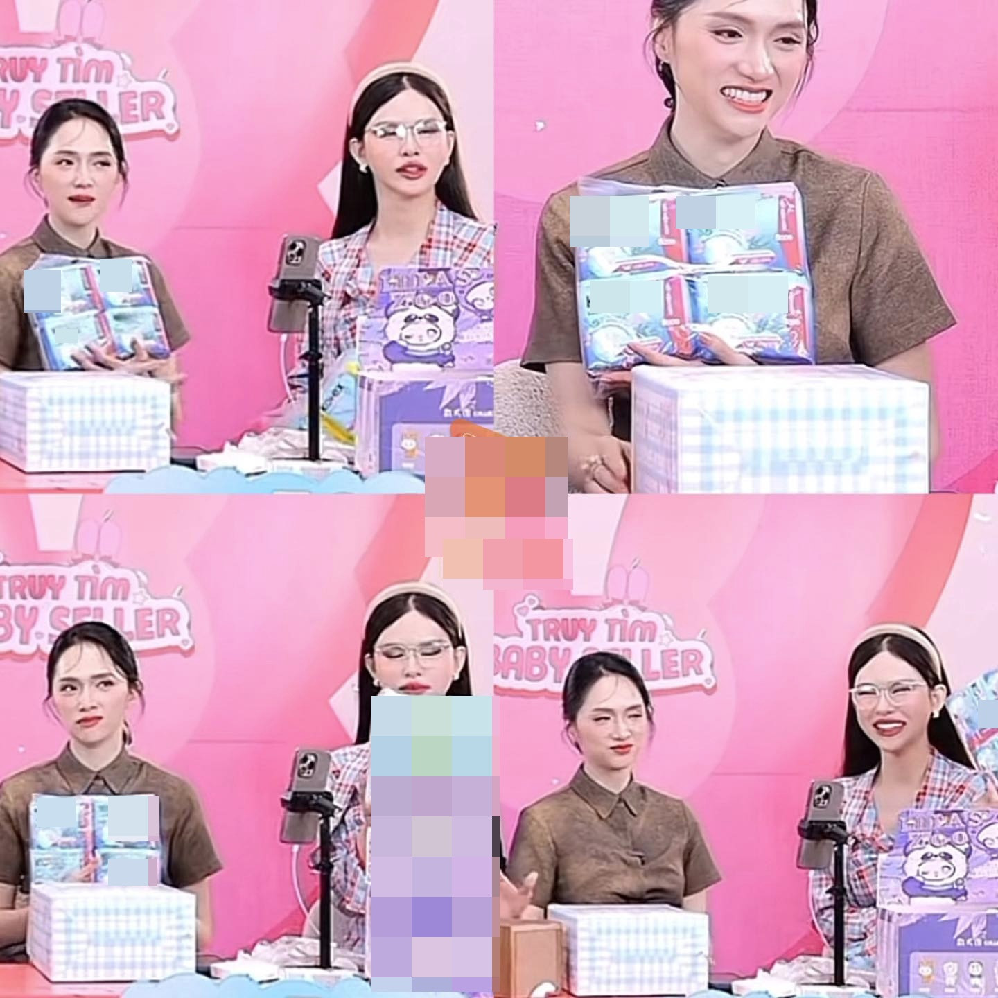 Thậm chí ngay đến cả Hương Giang - một người lâu năm trong nghề nhưng cũng "xịt keo" cứng người vì khó có thể review sản phẩm này. Trong khi đó, Huỳnh My chỉ biết cười trừ còn Mẫn Nhi liên tục nói: "Nhãn hàng quá chơi bời".