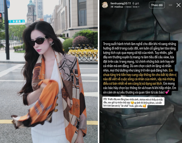 Trước nghi vấn "phông bạt", Hương Liên nhiều lần lên tiếng phủ nhận và thể hiện sự thất vọng trước những lời bịa đặt. Tuy nhiên, điều này vẫn không khiến mọi chuyện lắng xuống.