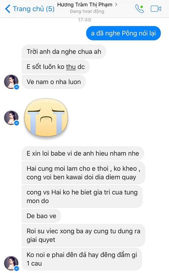 Theo stylist Pông Chuẩn, Hương Tràm đã nhắn một tin nhắn rất dài cho cô để trần tình về sự việc, thay vì đăng tải lời xin lỗi công khai trên mạng xã hội. Thực chất, sự cố đáng tiếc trước đó là lỗi lầm mà trợ lý mới "non nghề" của nữ ca sĩ gây ra.