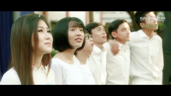 Không những thế, hình ảnh Hương Tràm trong tà áo dài tái hiện buổi biểu diễn văn nghệ trên sân khấu ngày bế giảng cấp ba đã chứng tỏ sự tâm huyết của nữ ca sĩ cho bộ phim này.