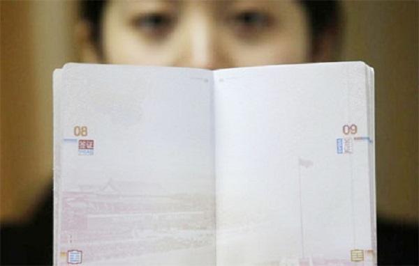 Tấm hộ chiếu của Trung Quốc với bản đồ đường lưỡi bò trên cùng bên trái.