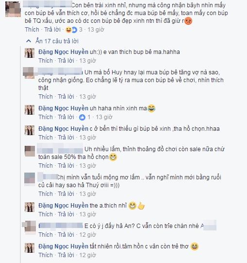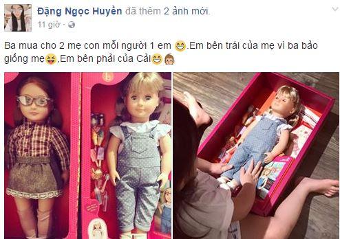 Theo đó, bà bầu Huyền Baby được ông xã tặng búp bê hình cô gái đeo mắt kính, mặc váy xòe. Bé Củ Cải được bố mua cho em búp bê với quần áo yếm dễ thương. Khoảnh khắc hạnh phúc này nhanh chóng nhận được vô số lời chúc gửi tới tổ ấm của hot girl.