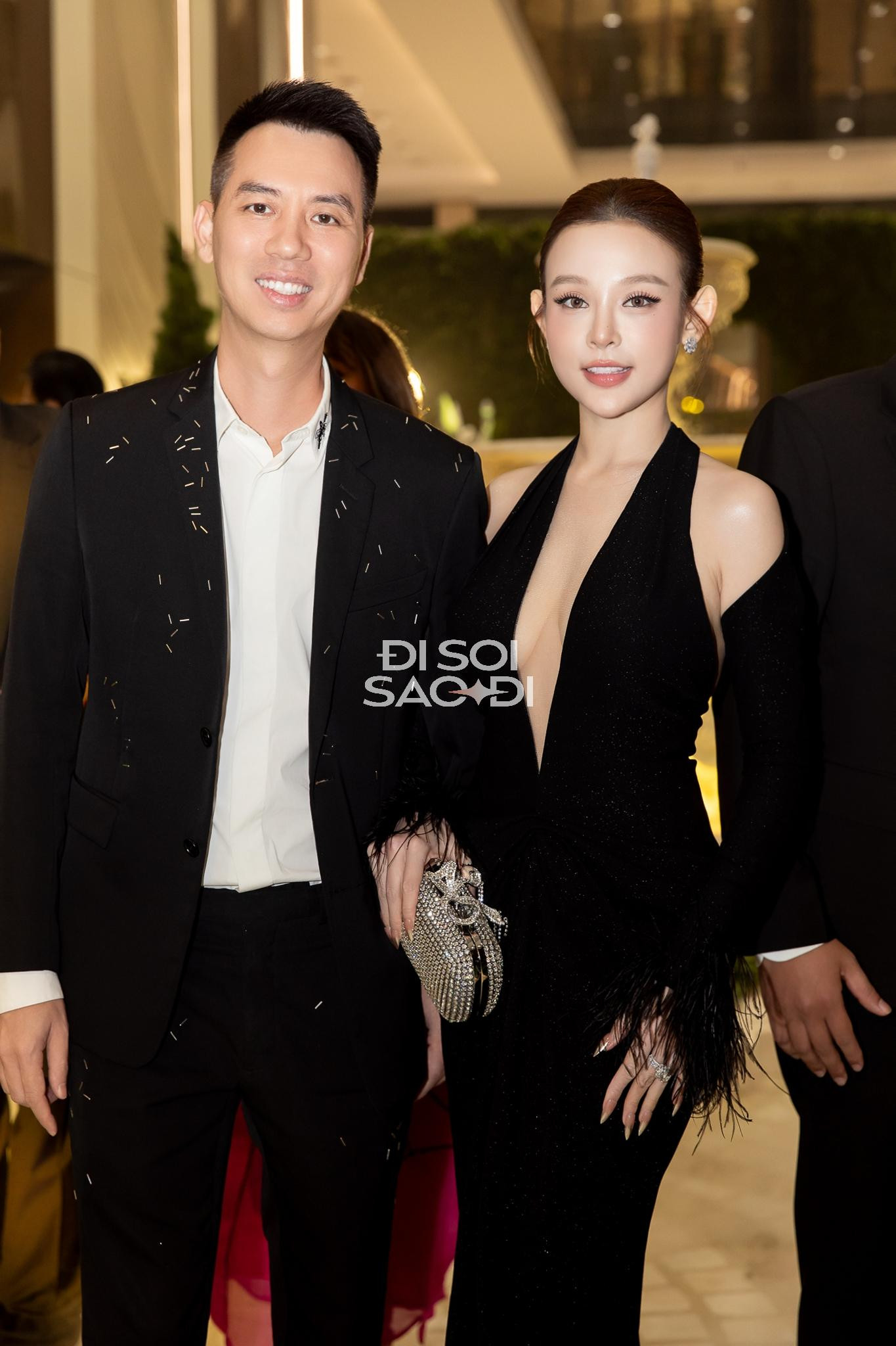 Đây là một trong những lần hiếm hoi Huyền Baby công khai sánh đôi ông xã doanh nhân. Cả hai thoải mái khoác tay nhau, dính như sam ở tiệc cưới thượng lưu.